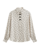 Shirt von Freequent aus leichtem Material mit Allover-Punkten. Das Shirt hat lange Ballonärmel mit Bündchen, verdeckte Knopfleiste mit kleinen Schleifen vorn und eine normale Passform.