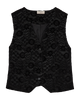 Weste von Freequent in einer wunderschönen Veloursspitzen-Qualität mit einem Blumenmuster. Die Weste hat ein schlichtes Design mit Knopfverschluss, V-Ausschnitt und vollständigem Futter, was sie sowohl elegant als auch komfortabel macht.