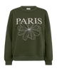 Pullover von Freequent in weicher Qualität. Der Pullover ist ein klassisches Rundhals-Sweatshirt mit langen Ärmeln, breiten Rippbündchen, normaler Passform und großem Print auf der Vorderseite. Ein Detail, das der Bluse einen femininen Look verleiht.